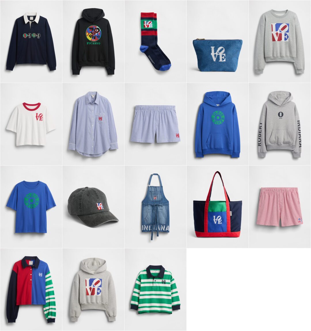 「アメリカのサイン画家」として抽象表現や言葉の力をテーマに独創的な作品を生み出したロバート・インディアナとのコレクションは、ロバート・インディアナの代名詞として世界的に有名なアート作品『LOVE』のデザインを施したスウェットやパジャマ、ポップなカラーが魅力的なラグビーポロ、フーディー、トートバッグ、ベースボールキャップなどアパレルから小物まで全18型がラインナップ。