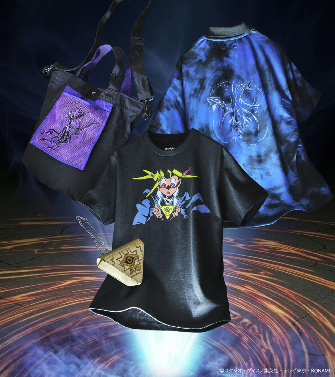 遊戯をはじめ、「ブラック・マジシャン」や「千年アイテム」などのモチーフに加え、グラニフのオリジナルキャラクター“ビューティフルシャドー”との特別なデザインもラインナップ!
