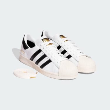 テクスチャード加工を施した柔らかいレザーをアッパーに、ウーブンラベルの代わりに配したデボス加工のロゴと予備のシューレースで、汚れても安心。