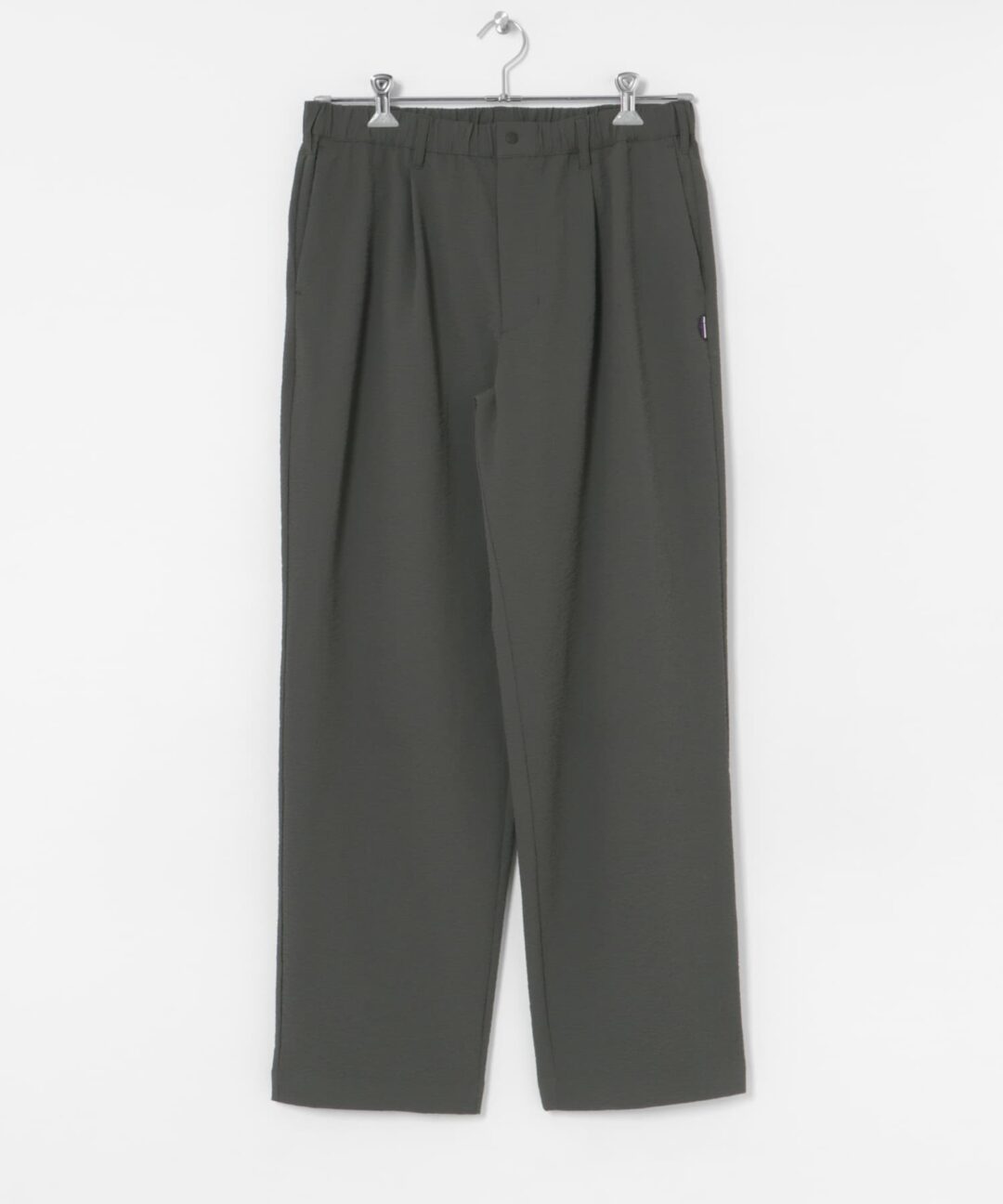 今回のWASHER CODEシリーズのシアサッカー素材は、縦横ストレッチに加え、吸汗速乾やUVカットなど夏に向けて嬉しい機能つき。収縮率が異なる撚糸を緯糸に走らせ、加工により特殊な表面感が生まれるポリエステル素材で、生地両面に凹凸が出来ることで、肌の接地面が少なく、ドライで快適な着心地を実現。